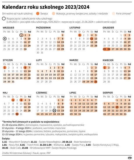 Kalendarz roku szkolnego 2023/2024. Kiedy wypadają ferie i Wielkanoc?